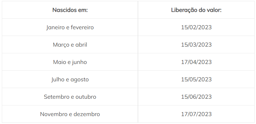 Tradicionalmente, os pagamentos do benefício são divididos em seis lotes, liberados conforme o mês de nascimento do trabalhador. O dinheiro é liberado para saque a partir da data indicada e fica disponível até 28 de dezembro de 2023. Quem perder esse prazo precisará aguardar convocação especial do Ministério do Trabalho e Previdência.